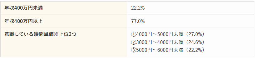 ここでは、人気の5つの職種について、年収の傾向やどれくらいの時間単価を意識しているかを見ていきましょう!