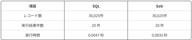 MySQLのFULLTEXT検索とSolrで、できる限り条件(クエリ・返却件数)を揃えて全文検索を実行し、速度の違いを比較すること。