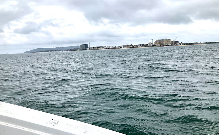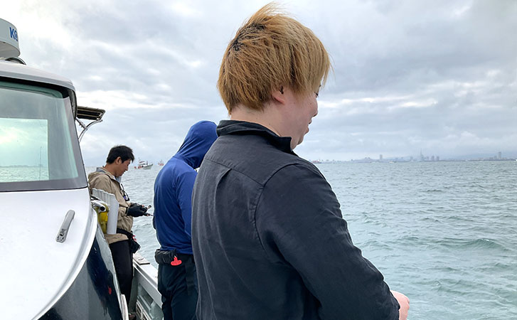 水しぶきで髪も服もぐちゃぐちゃになりながら、20分ほど船を走らせ、ポイントに到着。