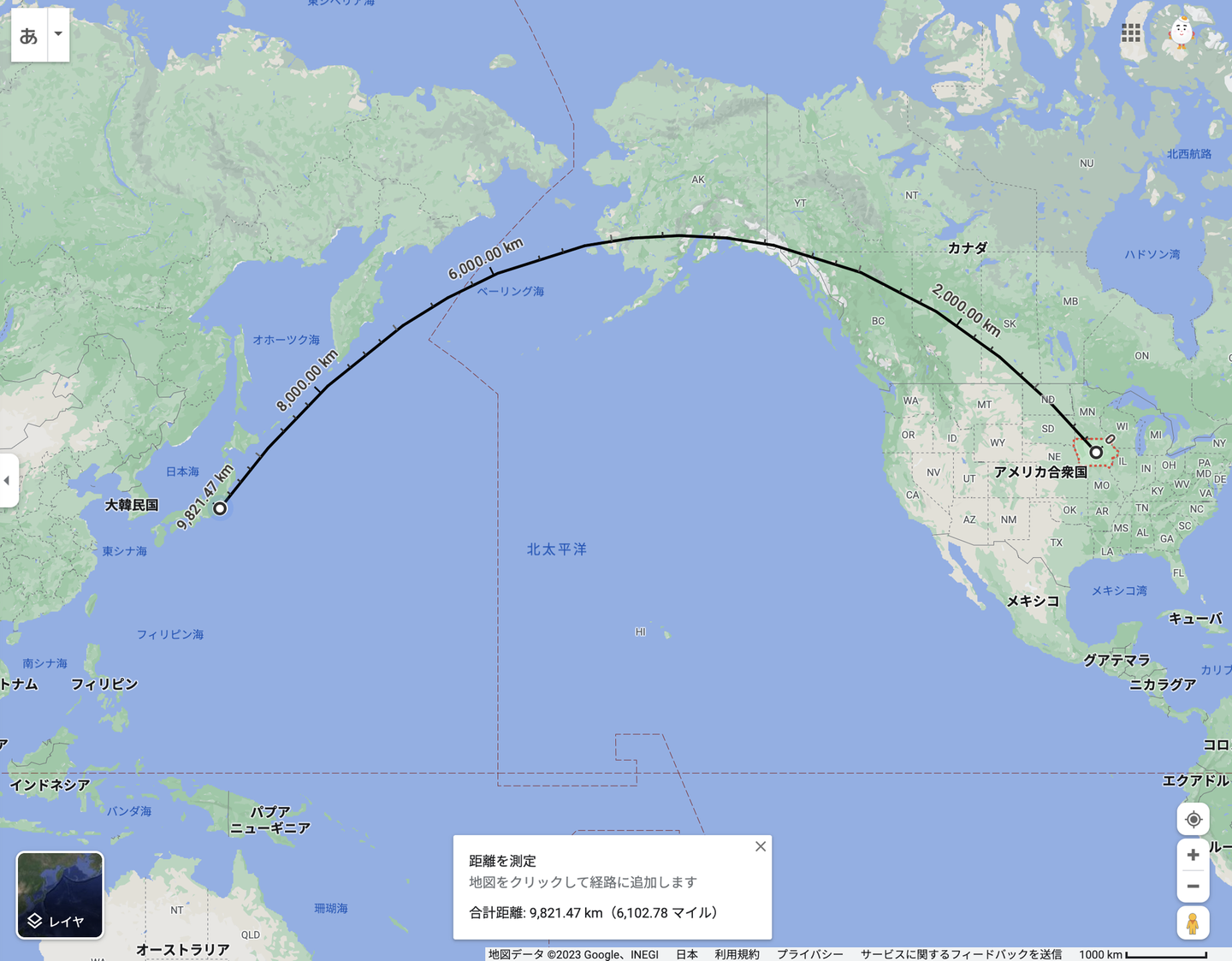 Googlemapで知るアイオワの位置....日本から約9800kmだそうです。