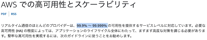 AWSの場合、99.9% ~ 99.999%の可用性を提供しています。