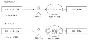 それでいて、旧システムの運用チームで今まで対応してきたエラー対応は資料として残っているので、そのまま継続して資料が利用できるようにしてリニューアル後もスムーズにエラー対応したい、なので旧エラーメッセージと新エラーメッセージは紐付けておきたい、といったのが今回の背景となります。