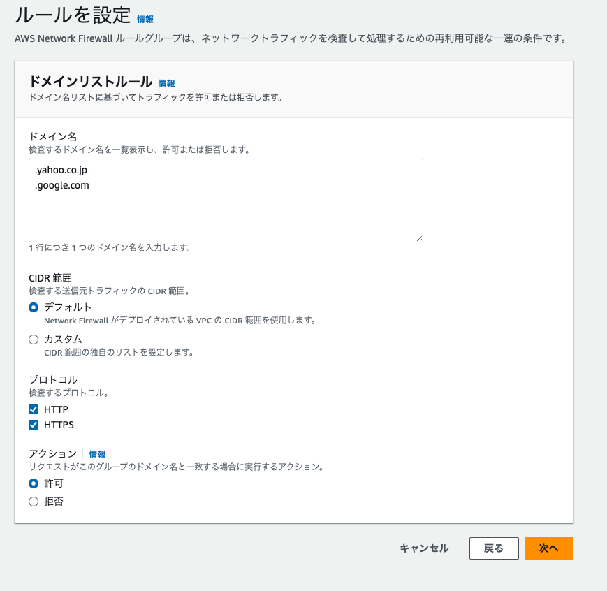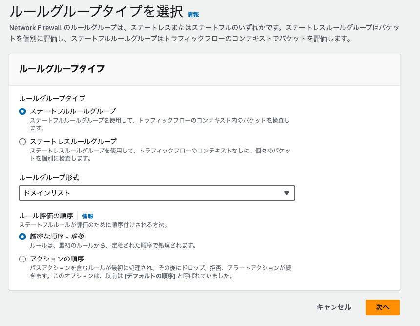 今回はStateful rule groupでドメイン名でトラフィックを許可するルールを作成します。