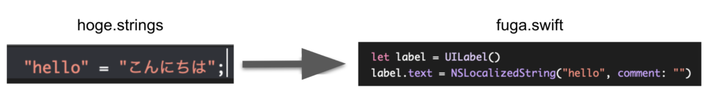 参照方法は R.swift や SwiftGen などサードパーティ製ライブラリで .strings のマネージャクラスを自動生成して、それらを介する方法もありますね。