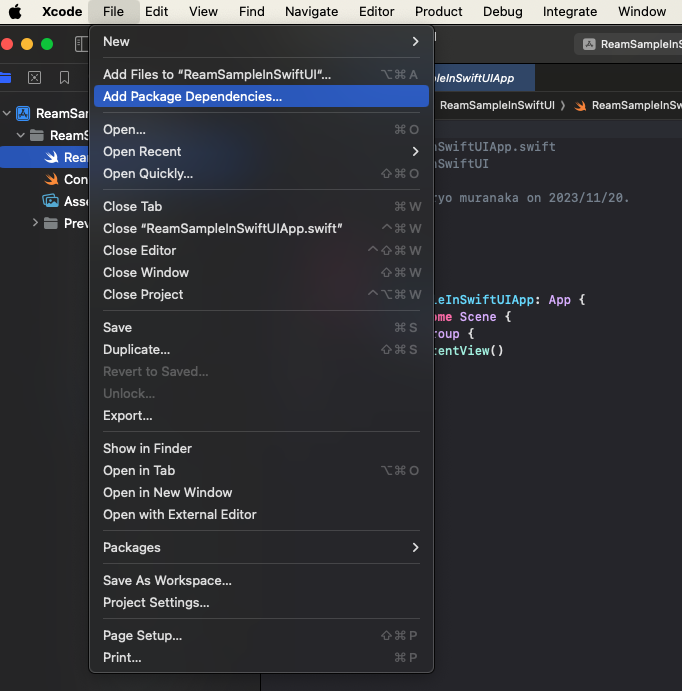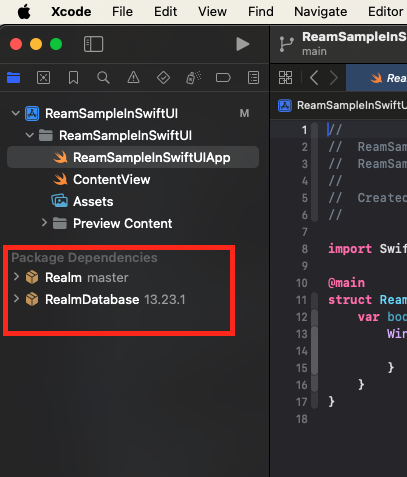 まずはRealmのPackageをインストールします