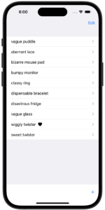 Itemをリスト表示して、項目をタップすると詳細画面に遷移します。- 右上の編集ボタンをタップすると、並び替え・削除が可能です。