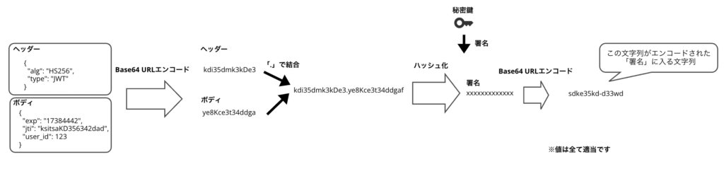 - ヘッダー・ペイロードをBase64 URLエンコード