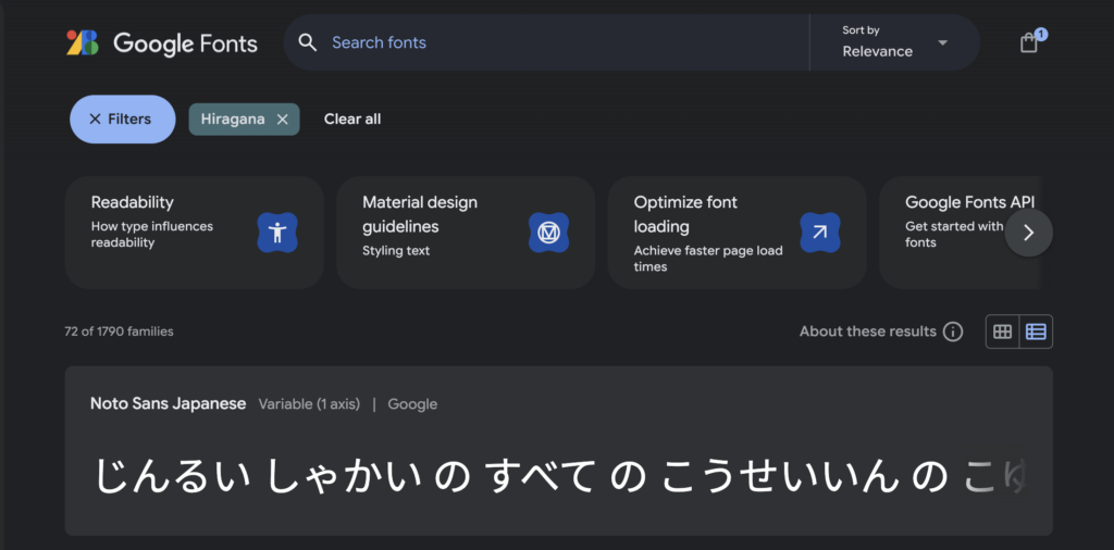 それでは、tofu問題の解決に向けて作業を進めていきます!デフォルトのフォントアセットに日本語が含まれていない問題を補うため、Google Fontsからフォントをダウンロードします。以下のリンクをクリックすると、様々なフォントがダウンロードできるサイトへ移動します。