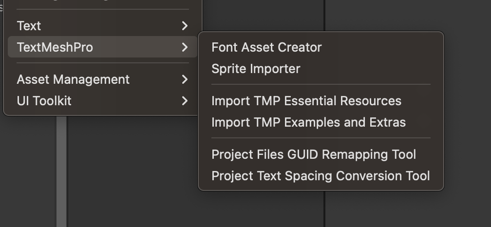 先ほどダウンロードしたフォントデータを使用するために、Text Mesh Pro用のフォントデータを作成する必要があります。以下の手順に沿って作成してください!