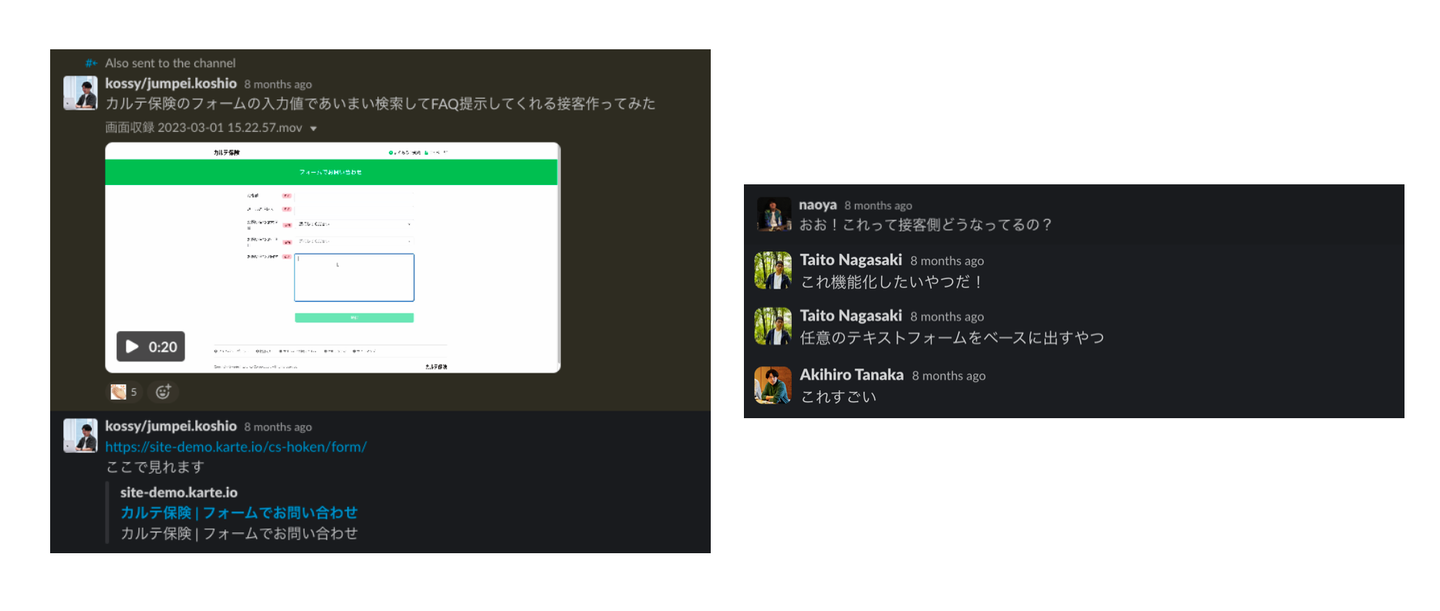 ライブアシスト機能の初期アイディアをSlackで共有した時のチームの反応