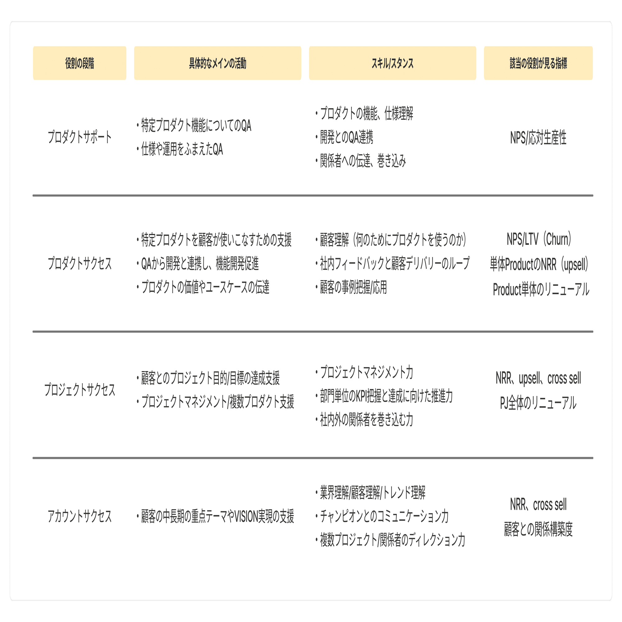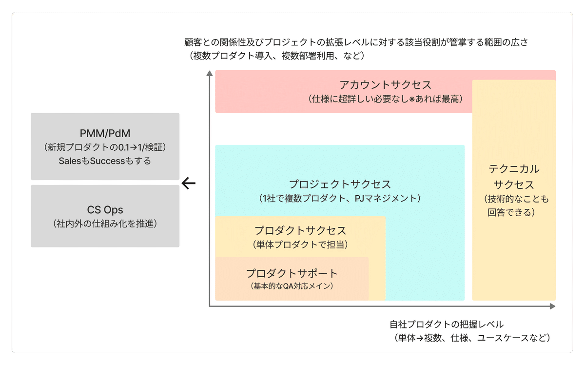ちなみに、個人的には上記の図に対して「テクニカルサクセス」や「カスタマーエンジニア」、「PdM / PMM」など、「サクセス×◯◯」が2と3の間くらいから派生して発生するイメージをしています。