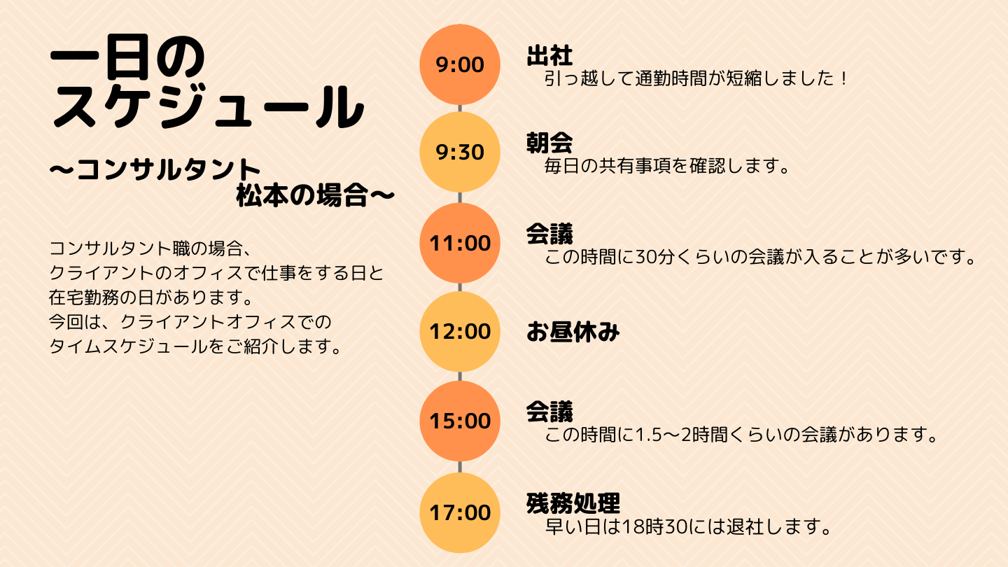 1日のスケジュールをご紹介!こちらはクライアントのオフィスで仕事をするときの例です。