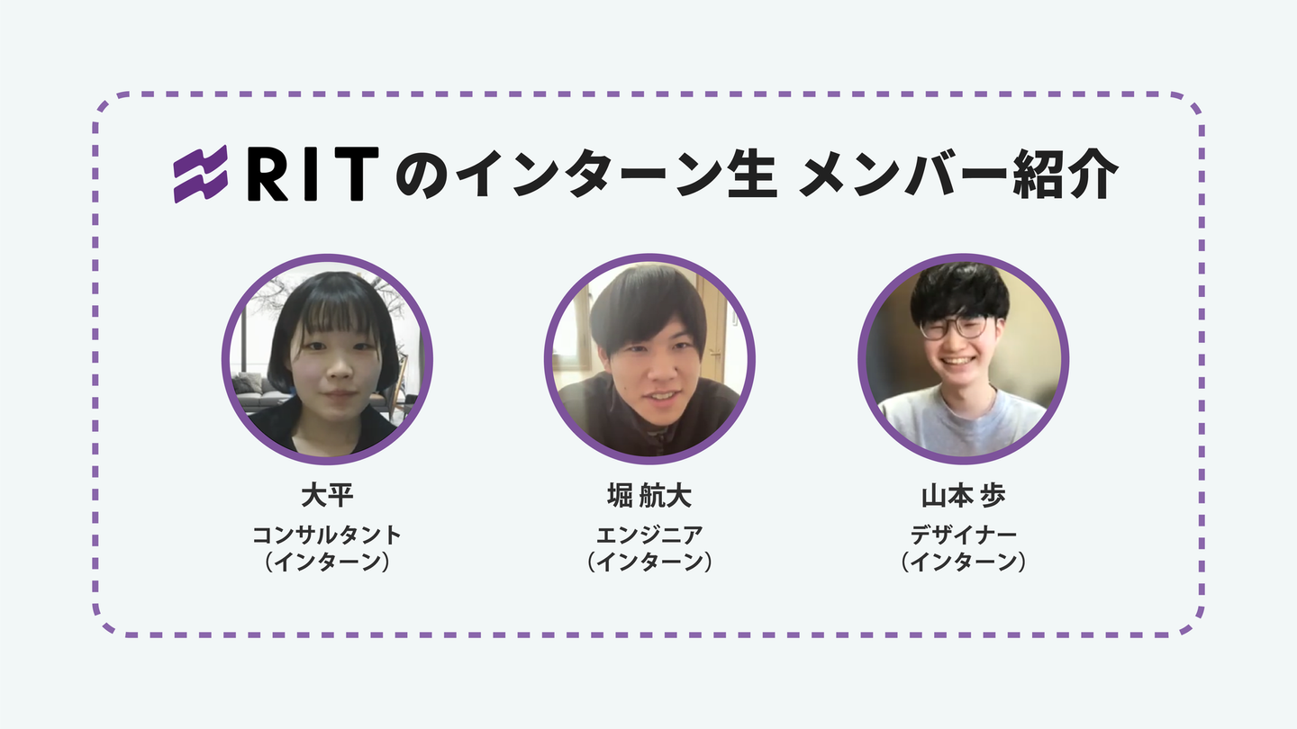 みなさんこんにちは! 今回はRITでインターンとして活躍しているメンバーに話を伺いました。インターンメンバーの目線からみたRITとは!? 長期インターン先を探しているコンサル・エンジニア・デザイナー志望の皆さん、必見ですよ☆