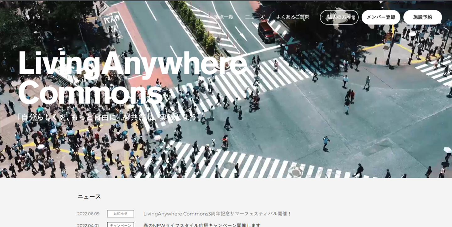 ②本登録後、LivingAnywhere Commonsにログインして行きたい場所と日時を選んで予約