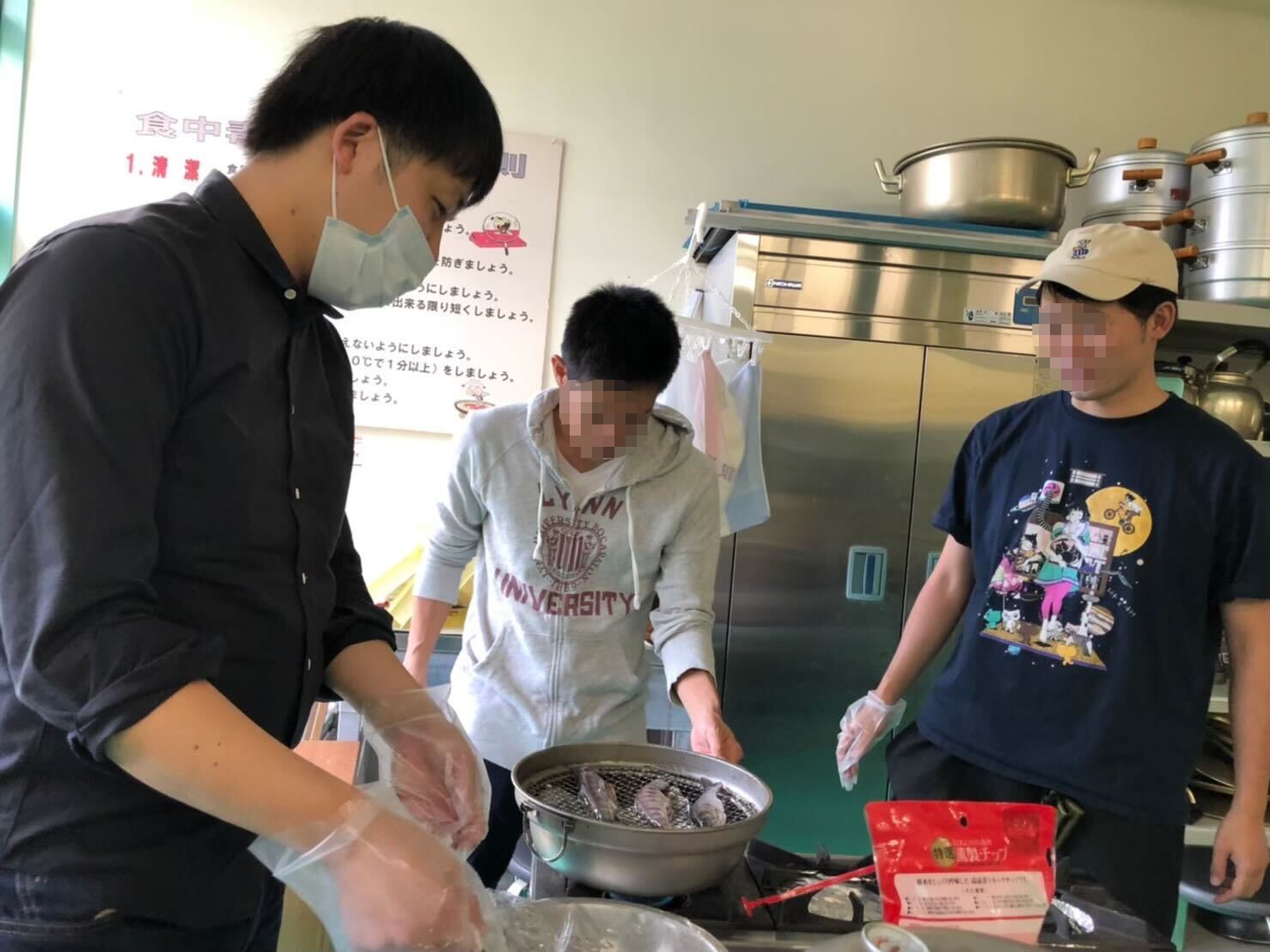 自分たちでヤマメの燻製を試作中。地元の素材を商品化するプロジェクトの一環です