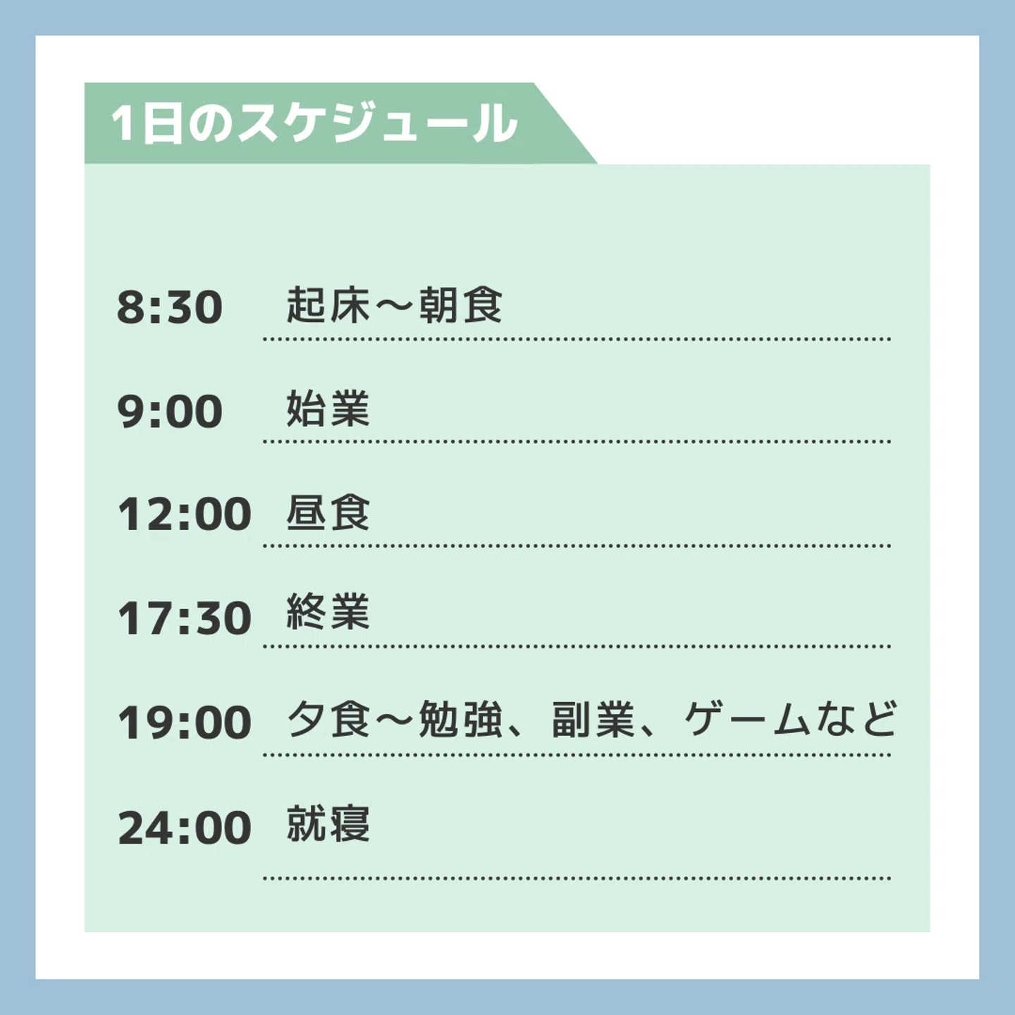 終業後は夕食を食べてから、テレビゲームをしたり、必要な勉強をしたり、副業の作業をしたりと、その日によって自由に過ごしています。