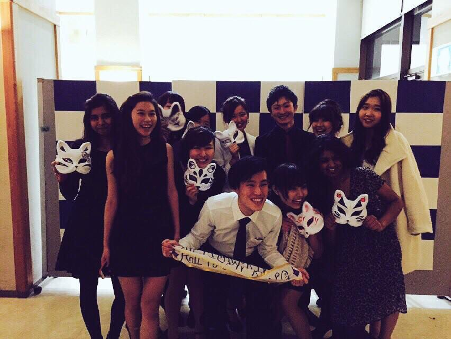 寮全体でのfarewell party(お別れ会)で同じフロアの仲間達(一部)と撮った1枚。 ※加工のせいで、やたら黒くてごめんなさい。