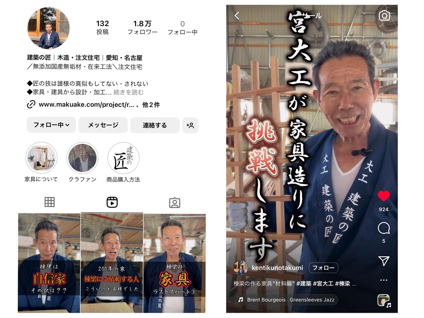 ・建築の匠の撮影・編集・インスタグラムの運用、クラウドファンディング
