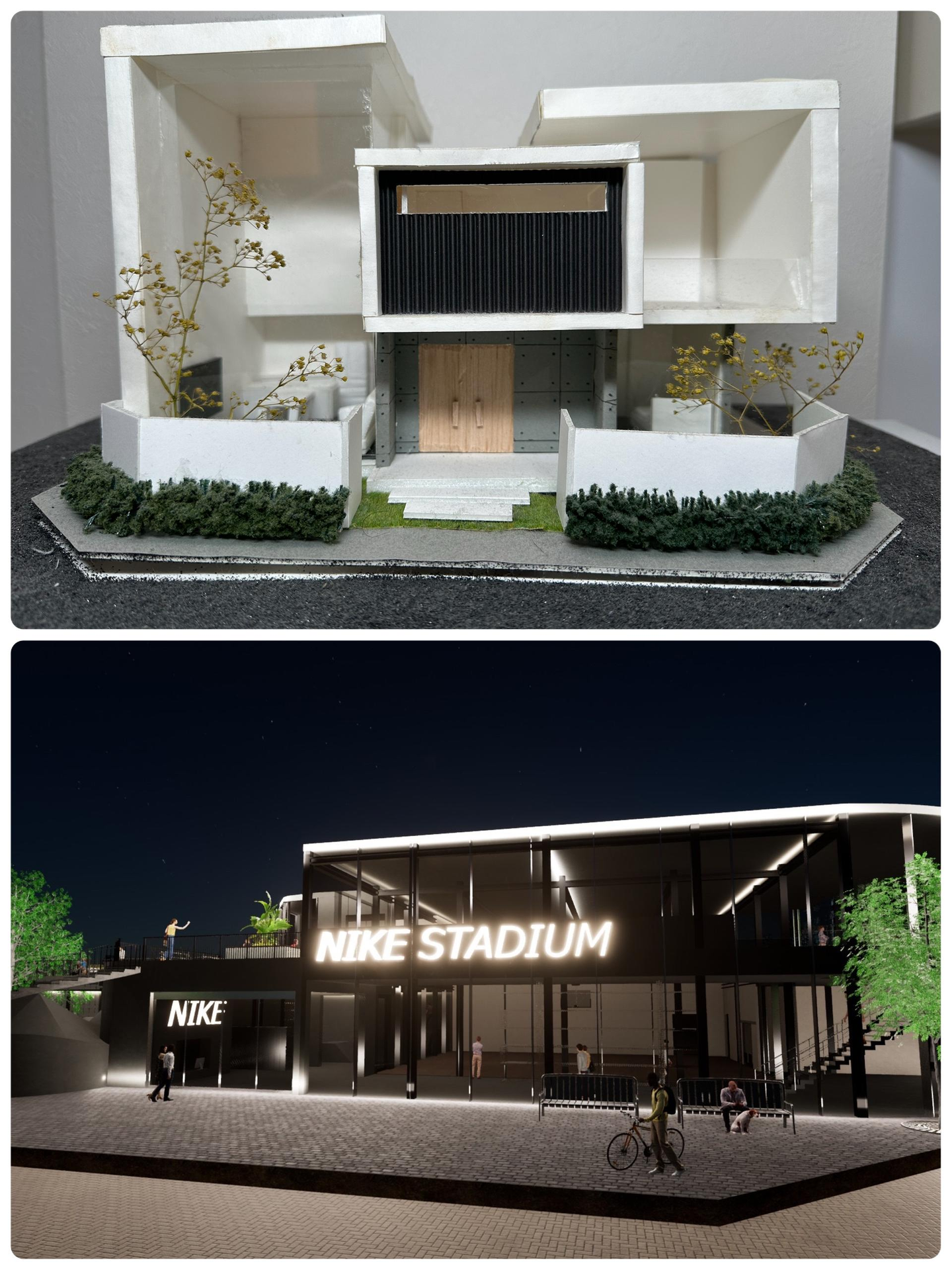 ↓大学時代に作った模型とキャドで作った3Dのデザインです!