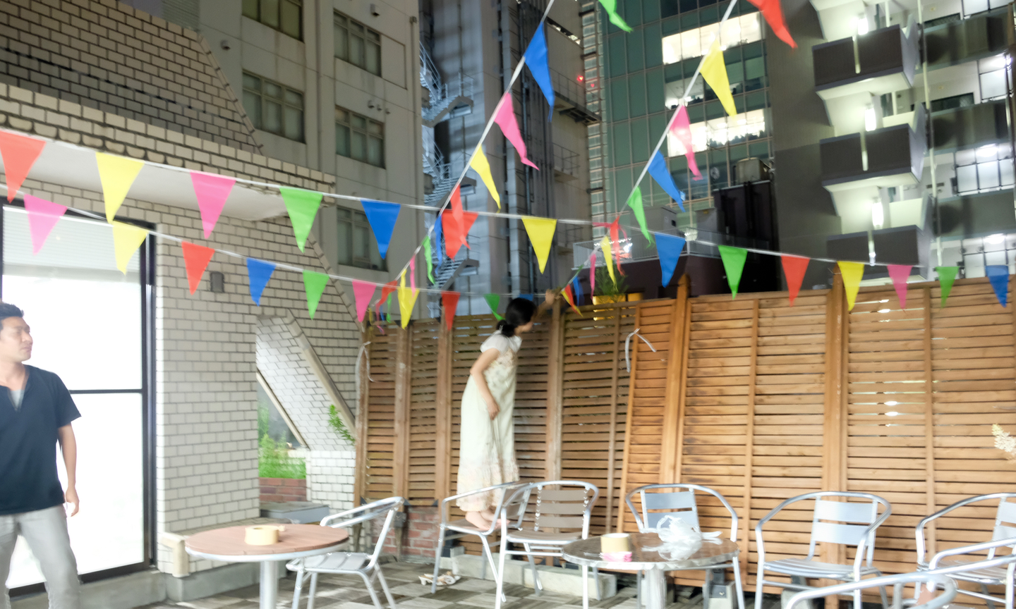 さて、本題のBBQですが、当日は幹事の皆さんがベランダを可愛く飾り付けてくれて殺風景だったベランダがポップな雰囲気に🌈