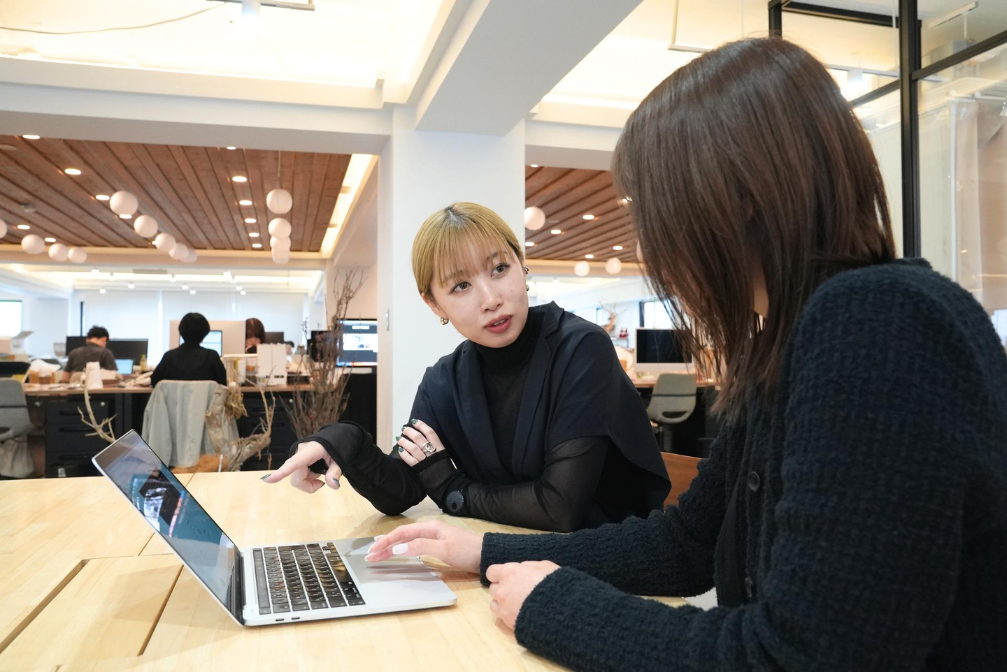 「組織の拡大に伴い、自身が対応できる幅が広がること」と「自身のスキル向上が組織のさらなる成長につながること」の両方を実感できるところです。まず前者について、入社当初はアパレル業界の案件が多かったのですが、組織が拡大した今では、幅広い業界の案件に携わることができるようになりました。また、YouTubeのサムネイルデザインなど、Web領域以外のクリエイティブにも関わる機会が増え、大きな学びとなっています。常に進化し続ける環境に身を置くことで自身のスキルも自然と向上しますし、日々発見があって楽しいです。