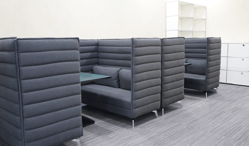 打合せや雑談など、ちょっとした対面でのコミュニケーションに使用できるスペースです。ボックス席・テーブル席・ソファ席からお好みのスペースを自由に選んで使うことができます。