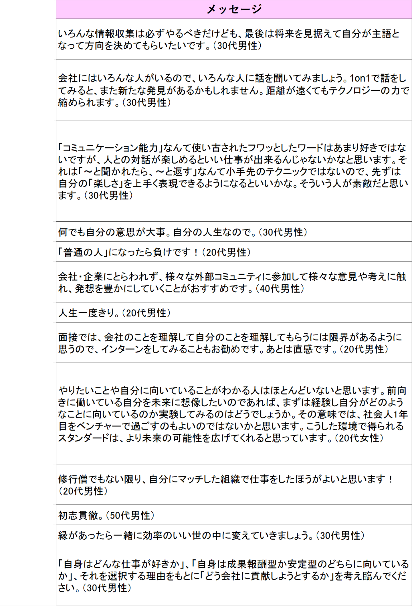 ということで、今回は社員の皆さんから頂いてきたメッセージをご紹介したいと思います。