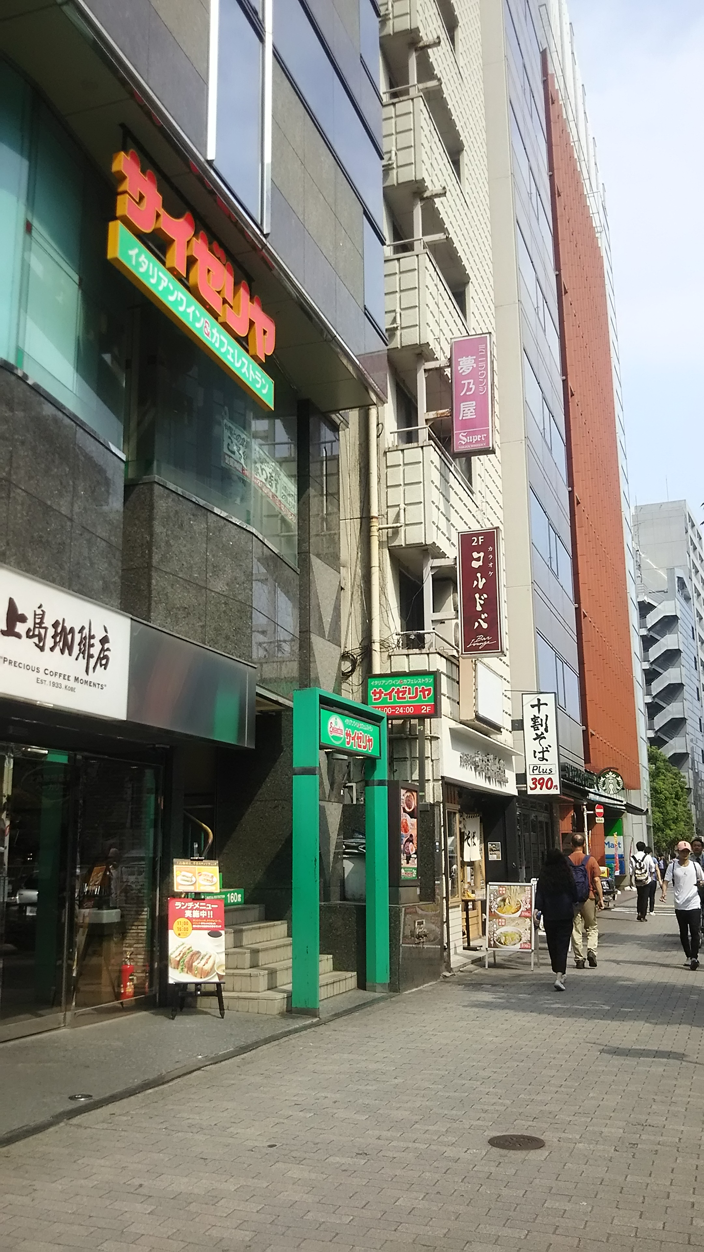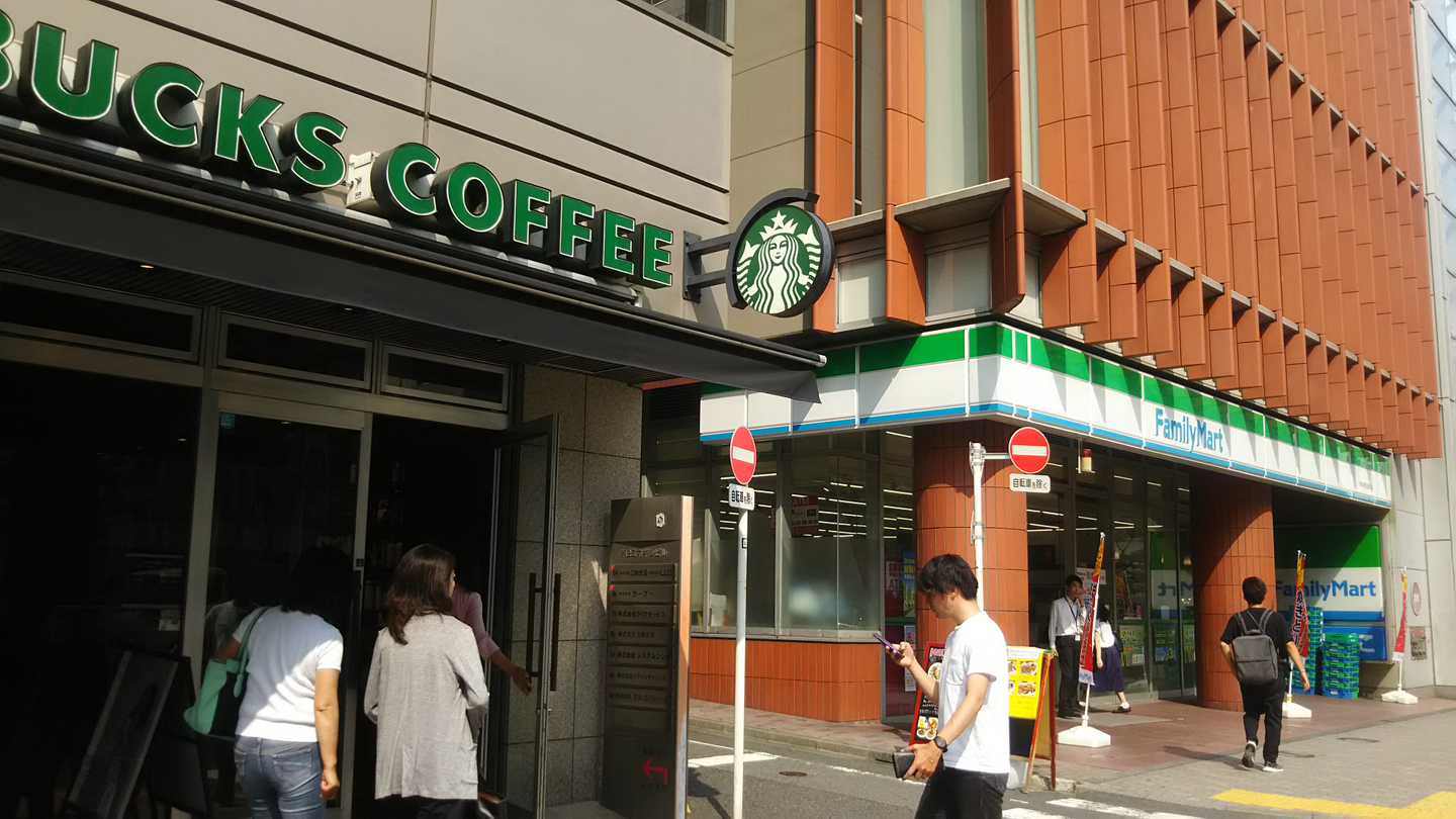 ↓の1階にスタバのあるビルが当社のビルです。緑の多い神社の近くでもあります。