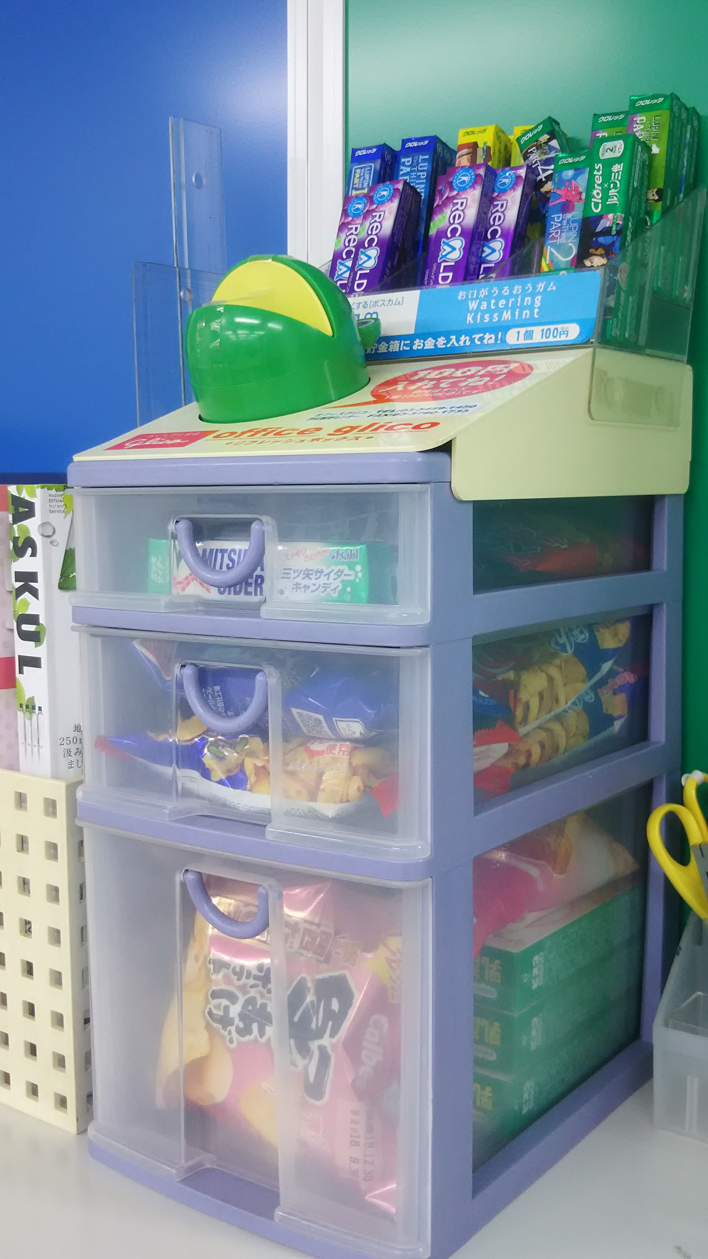 ↓オフィスグリコも食べ放題です(カエルの口にお金を入れる必要はありません!)