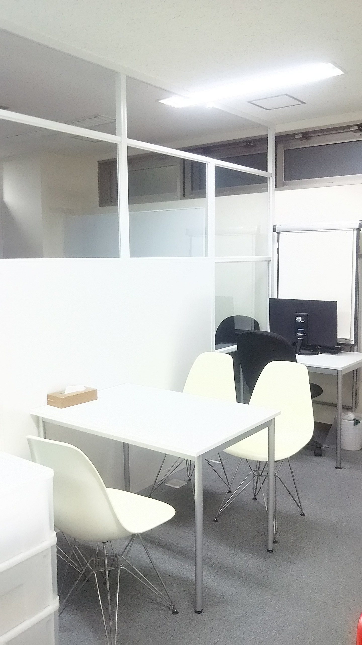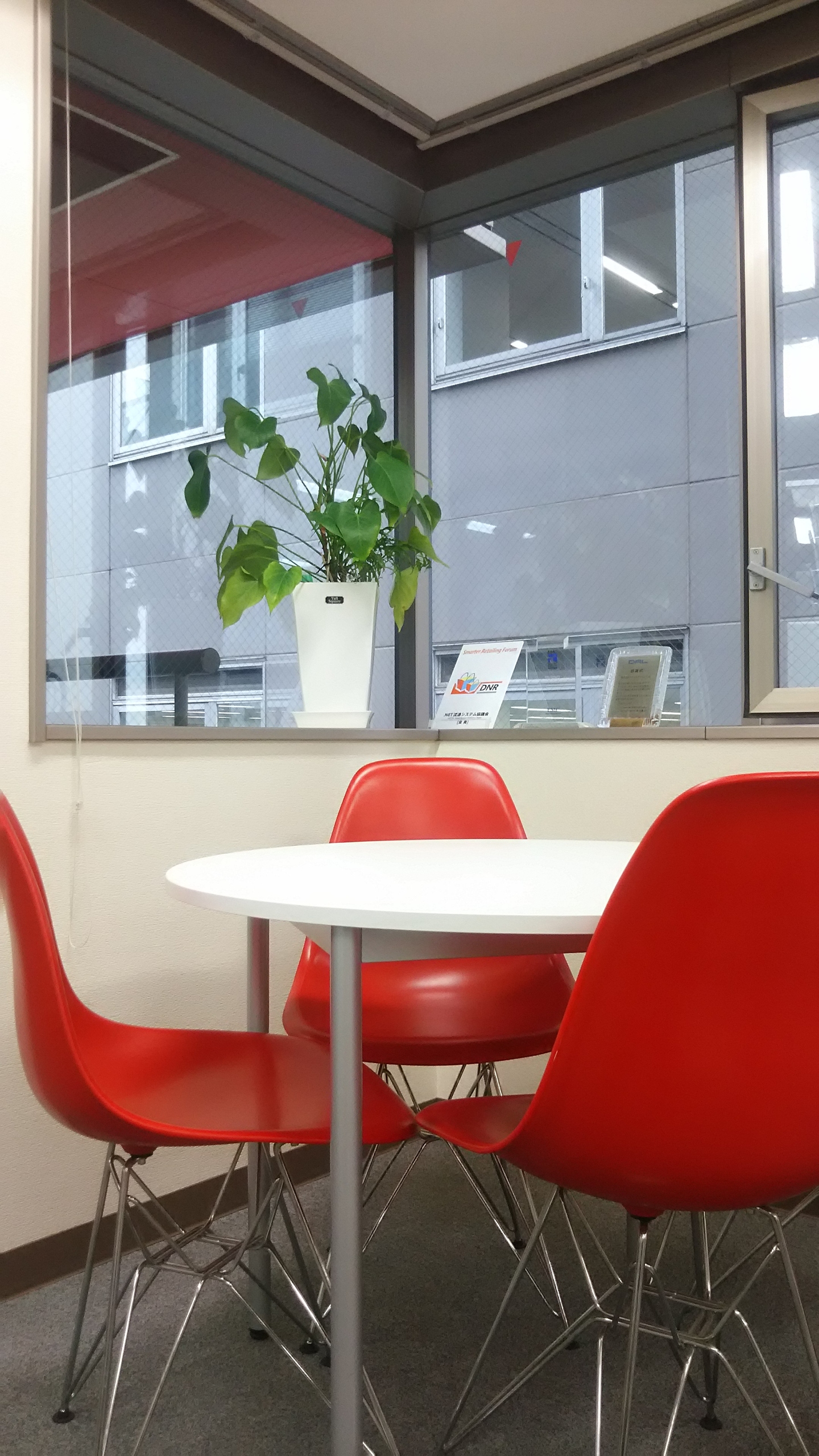 ↓が打ち合わせスペースです。会議まではいかないちょっとした打合せやランチで利用します。