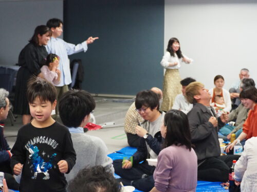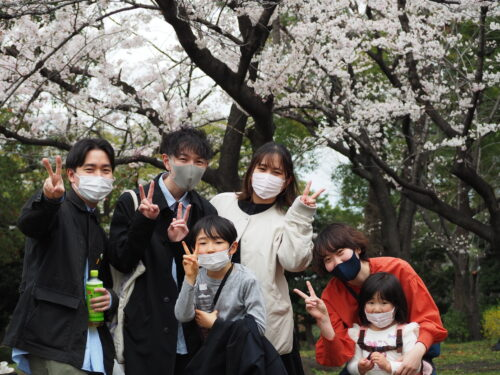 平和の森公園でお花見散歩をした後、社内でお昼ご飯を食べながら設計室のターニングポイントとなったプロジェクトを語ってもらったり、子どもも大人も一緒になって親和を深める場になりました。