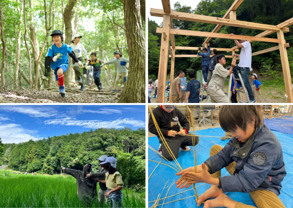 「自然学舎・仕事学舎」は、大阪北摂の彩都にある自社所有林や奈良・三重の自社農場の恵まれた大自然を教室にした、自然体験・仕事体験プログラムです。小学生から中学生が、毎週土日に参加し、山林の中では自然探索やサバイバル活動、畑では、稲作・畑作から販売まで行います。一過性の体験ではなく、継続課題として本物の実践を大事にしています。チームで取り組み、異年齢での教え合いが生まれる体制を導入しています。自らの手で実践を繰り返し、「リアルに生きる」を体感しながら、遊び、学び、仲間と共に熱中・探求できる学び場を提供し、「将来に生きる力」を育んでいます。>>>自然学舎HP