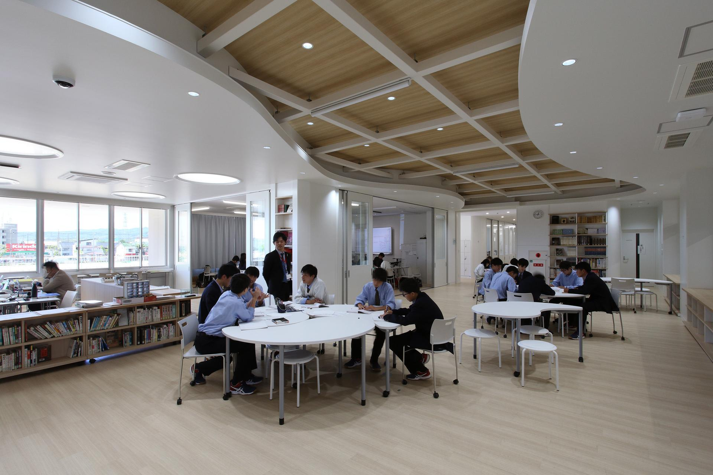 例えば東京大学では、2011年に『21KOMCEE West(理想の教育棟)』を手がけました。理想の教育棟というくらいですから、これまでにない先導的な教育環境を整備すべく、学生たちが自ら情報を探索し答えを出す日本で当時最先端の『アクティブ・ラーニングスタジオ』が実現しました。その後の追手門学院中・高等学校の建て替えでは、キャンパスの移転構想から参画し、新たな学びを実践する若い先生と共に「未来教育プロジェクト」を立上げ、1年かけて新教育のあり方を追求しました。そこでは設計事業部に加えて、教育事業部も参加しながら議論を行い、最終的に建物の計画に反映。脱・教室を掲げて、どこでも学べる校舎を実現しました。