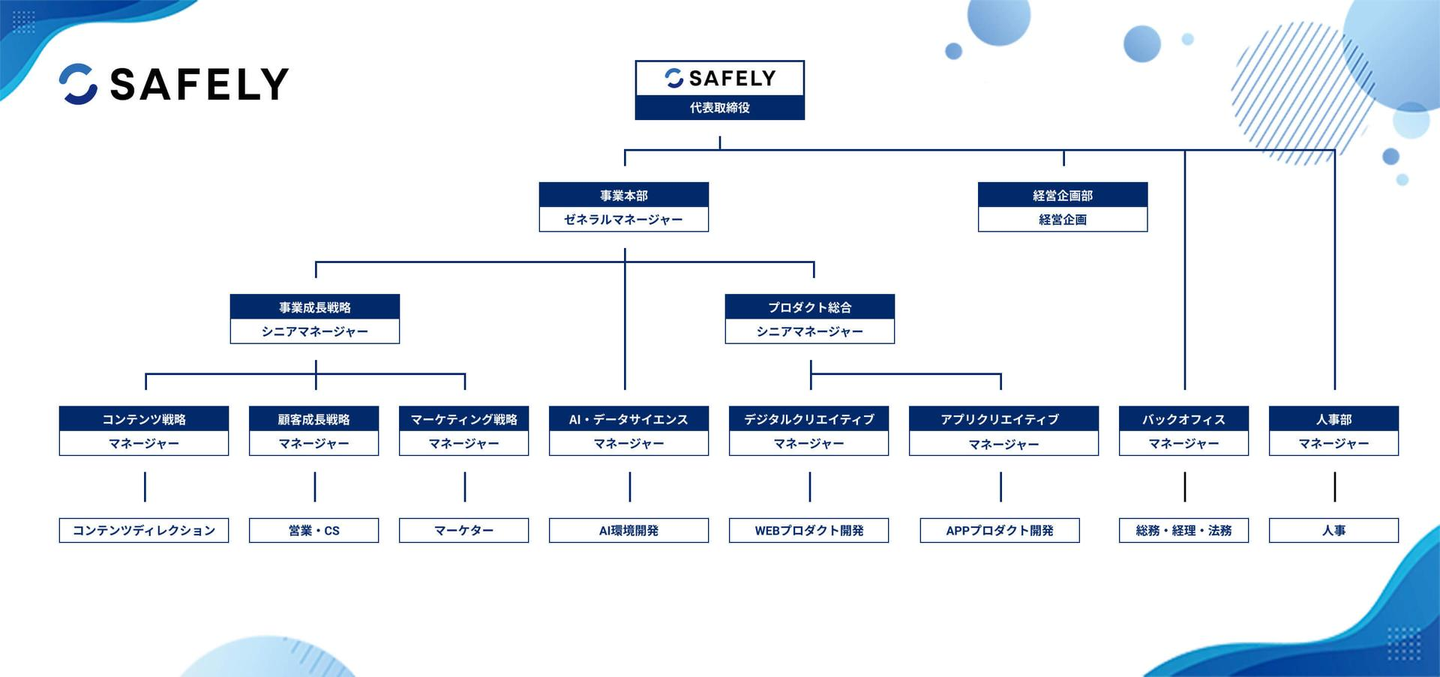 ──まずは、現在のSAFELYの組織体制や特徴について教えてください。