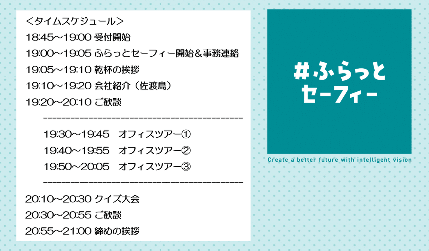 ふらっとセーフィーは、「ふらっと気軽に立ち寄れてフラットにお話が出来る場」をコンセプトに、単なる採用イベントではなく、誰もが気軽に参加して楽しめる交流の場にしたいという想いが込められています。