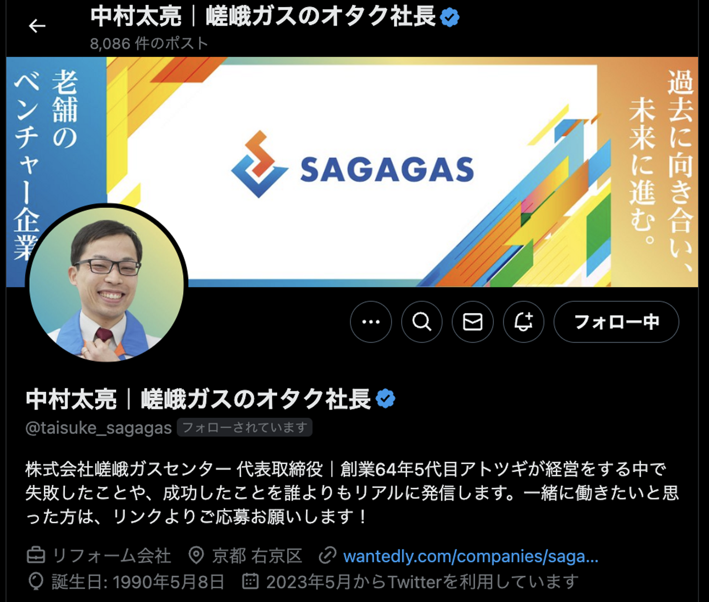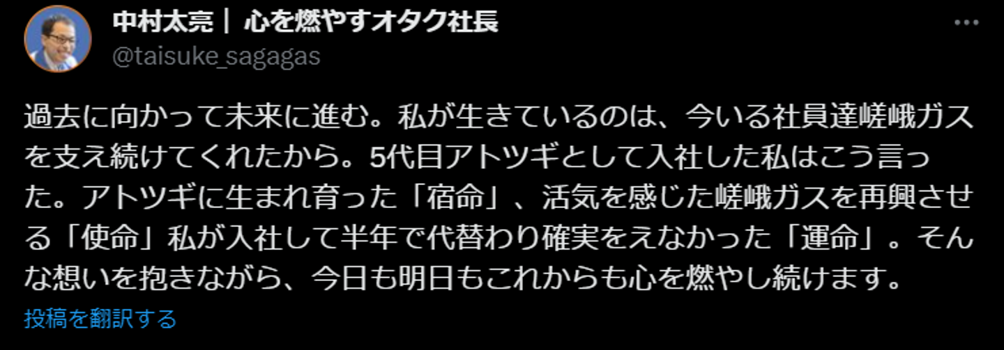 >>嵯峨ガスセンター5代目社長・中村太亮のXアカウントをフォローする