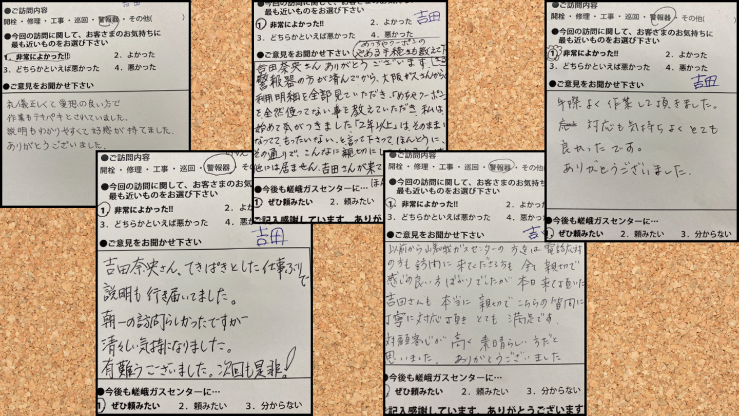 「吉田さんが提案してくれたリフォームで、すごく綺麗になって嬉しいよ!」とか「また次もよろしくお願いしますね!」とか。