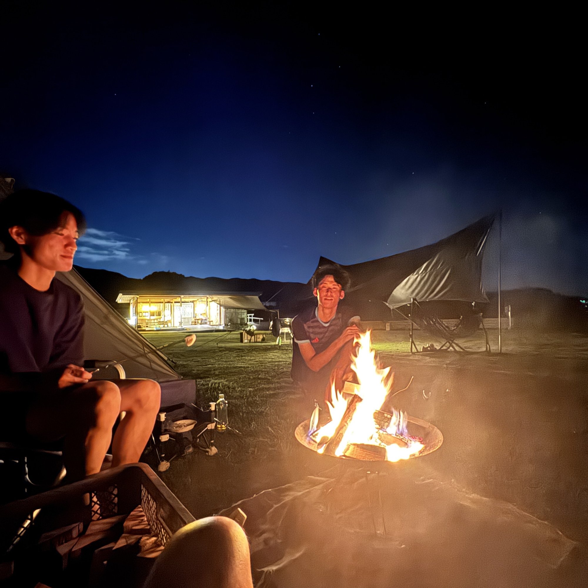 BBQでは、日が沈む景色を眺めながら食事を楽しみました。夜は焚火を囲み、普段の業務中にはなかなか話せないプライベートな話題も自然に出てきて、ぐっと距離が縮まった気がします。