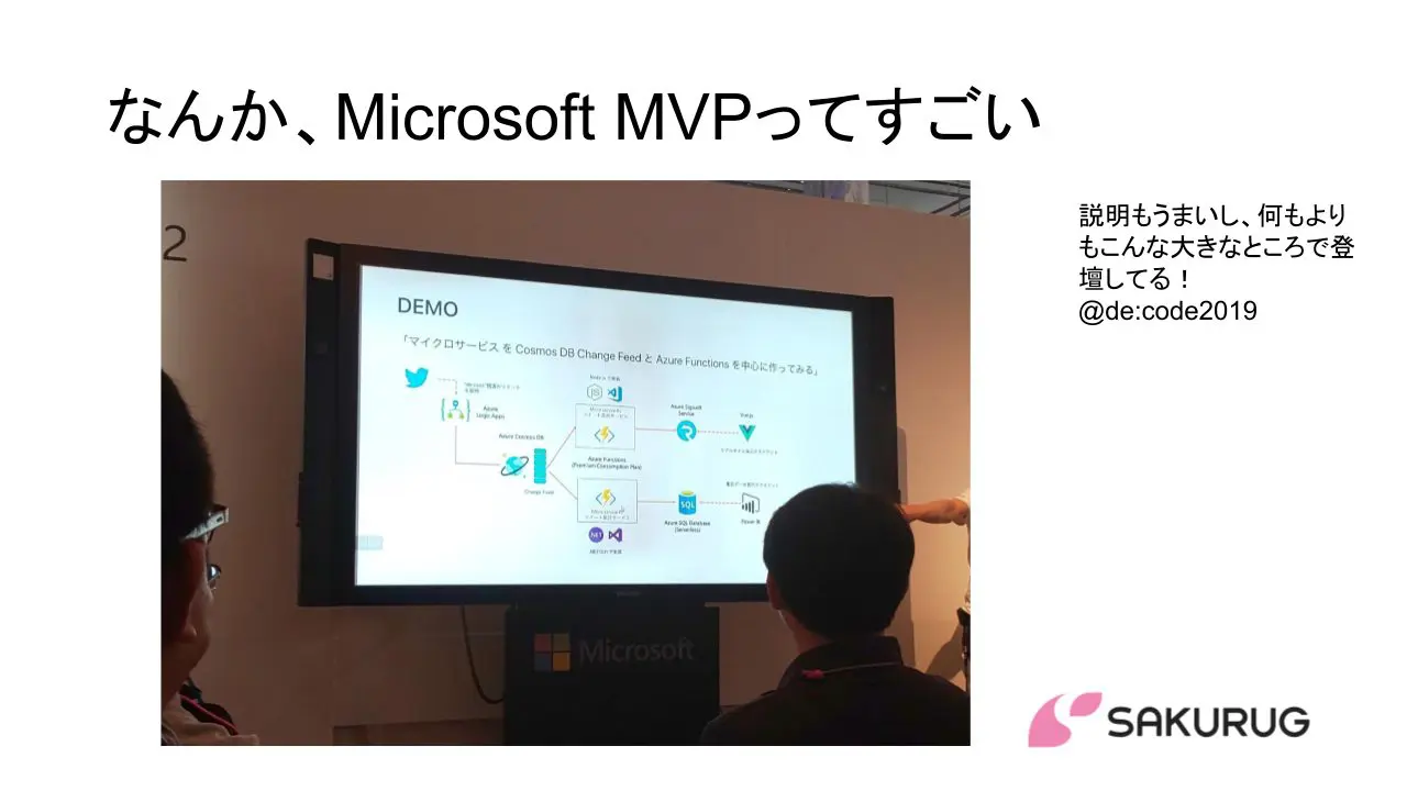 どういう人かというと、Microsoftの製品およびサービスに関する極めて深い知識がある&それを熱意をもってコミュニティに共有する方です。すごいエンジニアというだけではなく、コミュニティ活動を通してそれをみんなに共有している事が必須条件になっていて、どちらか一方だけではなれません。