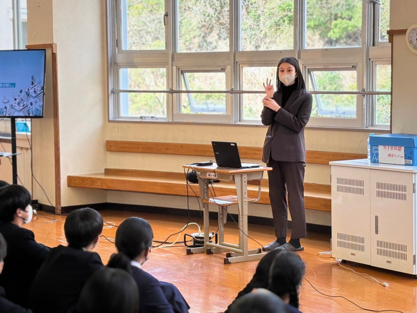 ・五島列島の中学校でキャリア教育イベント:五島列島の中学生を対象に、将来のキャリア選択に役立つさまざまな職業情報やスキルについて講義