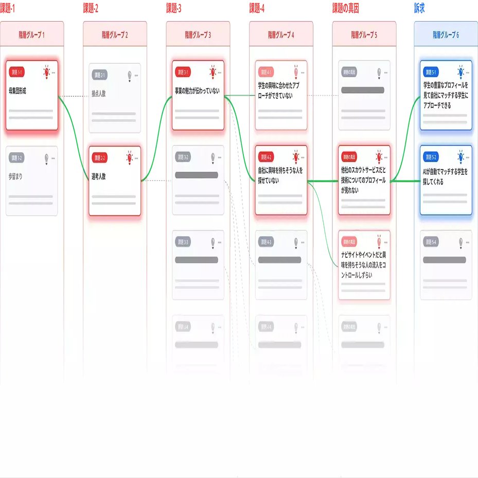 Value Intelligence の中核には、Salescore 独自の「Value Map」というフレームワークがあります。このフレームワークは、顧客が抱える課題・その根本原因・そこから営業提案がどうなっていくかをツリー構造や地図のように表現するものです。
