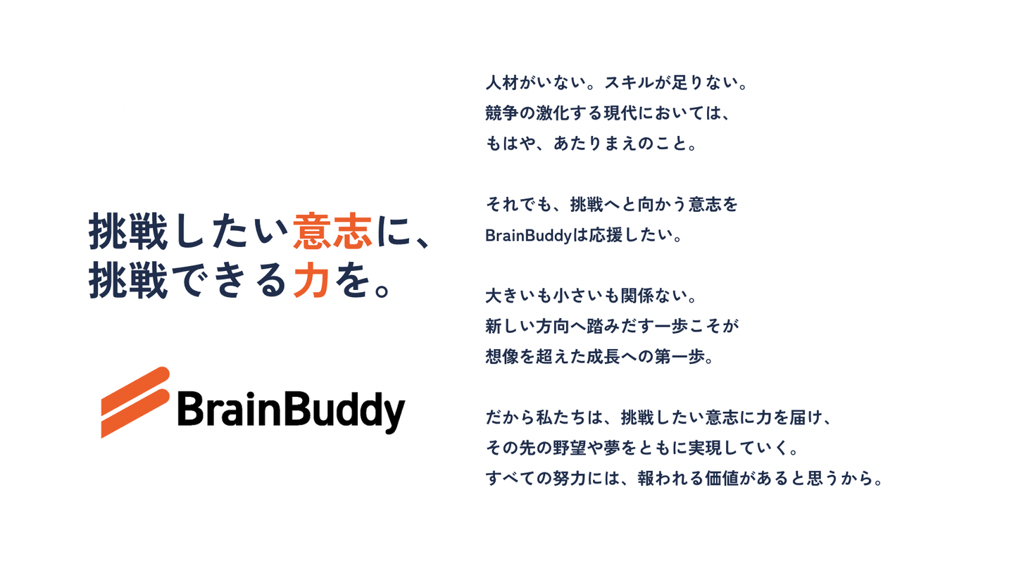 ブレーンバディが、お客様にとってどのような存在でありたいかを、コーポレートキャッチとして定義しました。