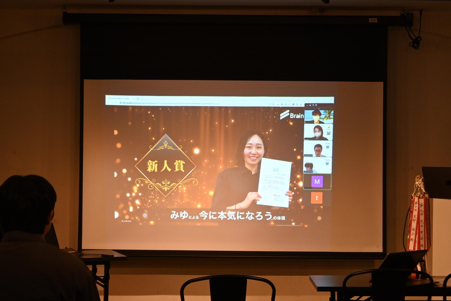 ブレーンバディでは、毎月末に全社員とインターン生が集まり、月間表彰や事業部ごとの共有、そして全社的な経営方針を共有する「締め会」を開催しています。