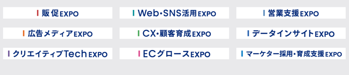 各企業のマーケターと支援会社をマッチングする、日本最大級のマーケティングの総合展示会。マーケター・Webディレクター・宣伝・広報・営業推進とマーケティング支援サービスのプロが出会うビジネスマッチングの場として、売上アップ・ブランディング・集客力アップなど、企業の課題解決に絶好の機会を提供している展示会です。