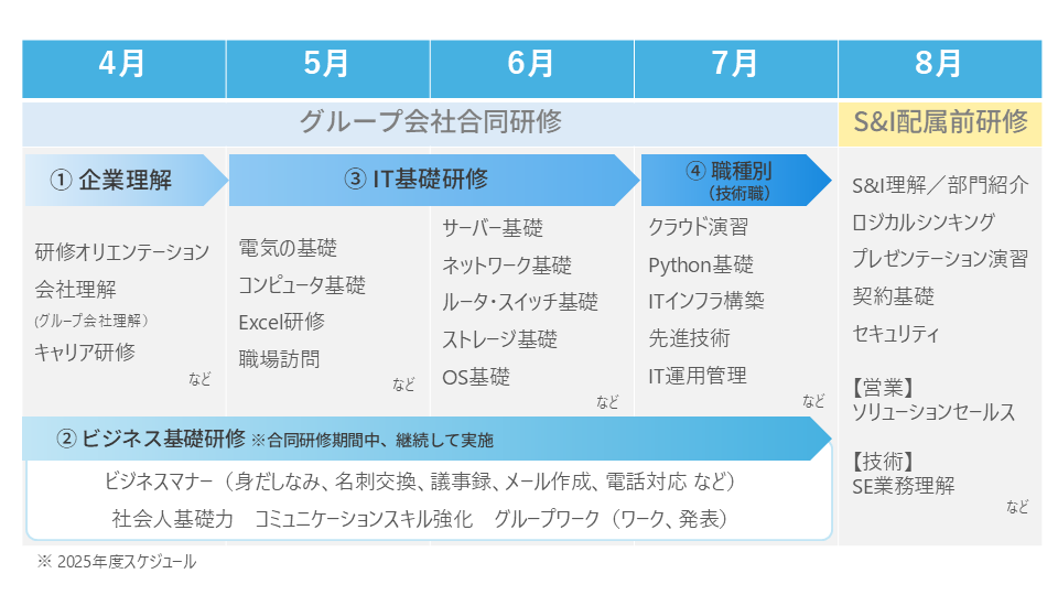 第1回となる今回は、S&Iの新人研修の実施期間や研修内容をご紹介します。