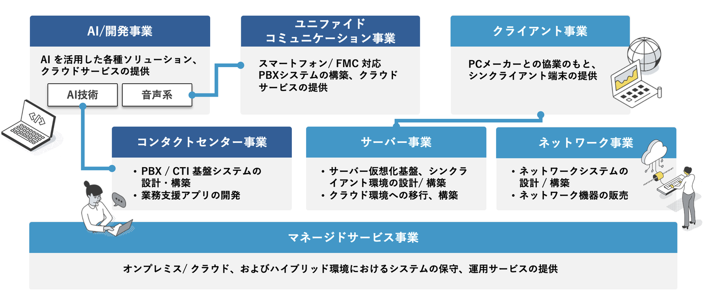 S&Iは、1987年の創立以来、企業やデータセンターのネットワーク基盤の統合や仮想化、CTI関連システムの構築、アプリケーション開発など、常にお客さまが求める最適なICTプラットフォーム環境の提供をおこなっております。さらに、これまで培った技術力に加え、AIを活用したサービスを提供するなど、お客さまの業務領域における課題解決のご支援に注力しています。