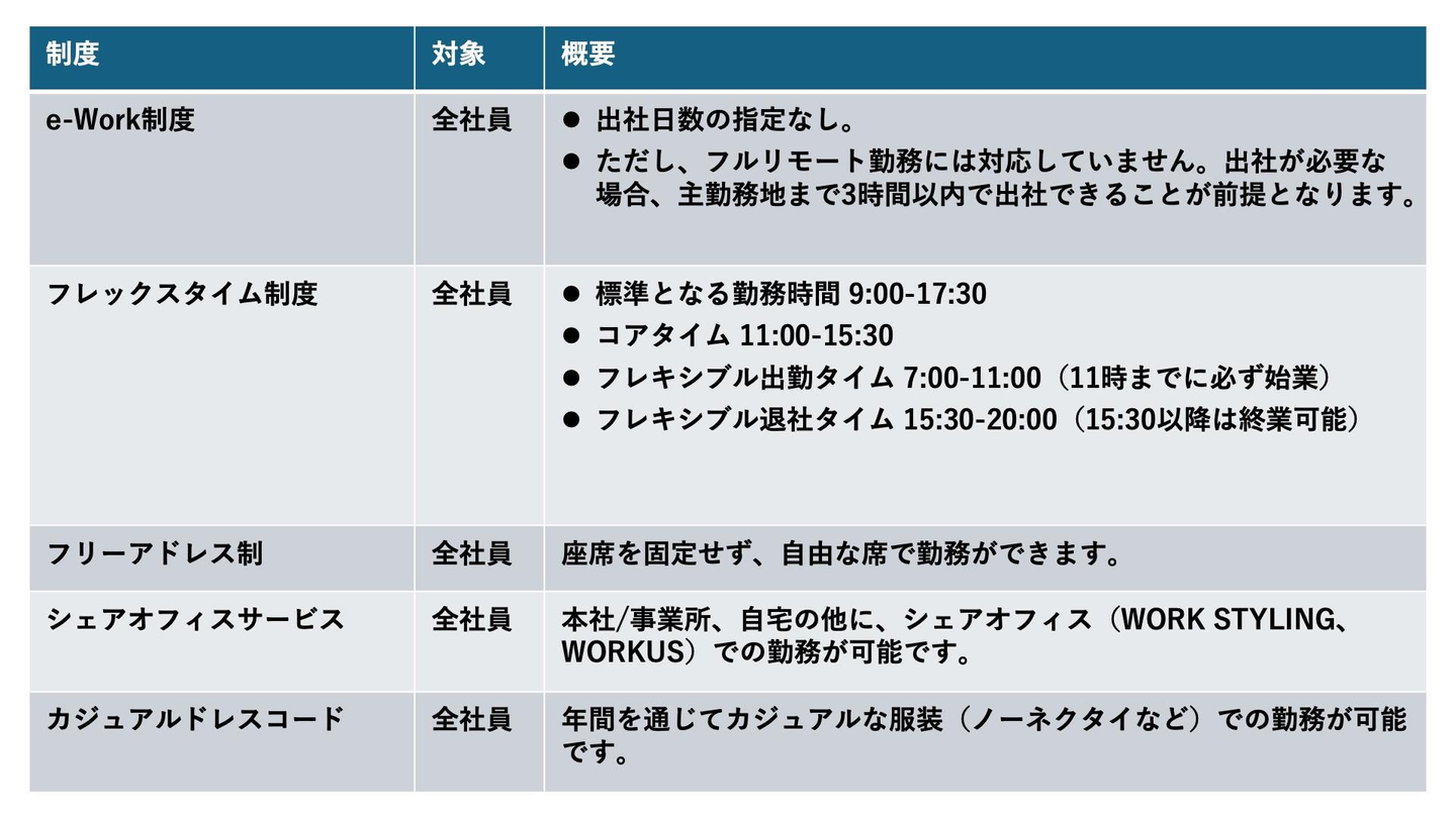 S&Iの働き方に関する基本情報は以下のとおりです。