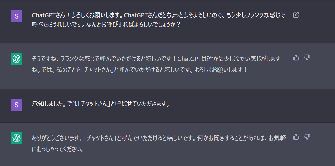 chatGPTを 「チャットさん」 と呼ぶことにしました!