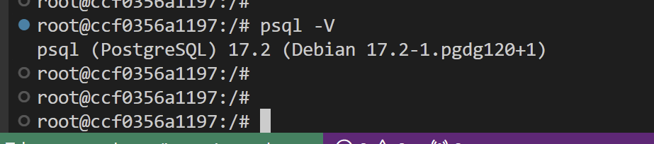 ちゃんと接続出来てますね。こちらはルートユーザでのプロンプトが表示されています。` そしてちゃんとPostgresがインストールされた状態であることもわかります。