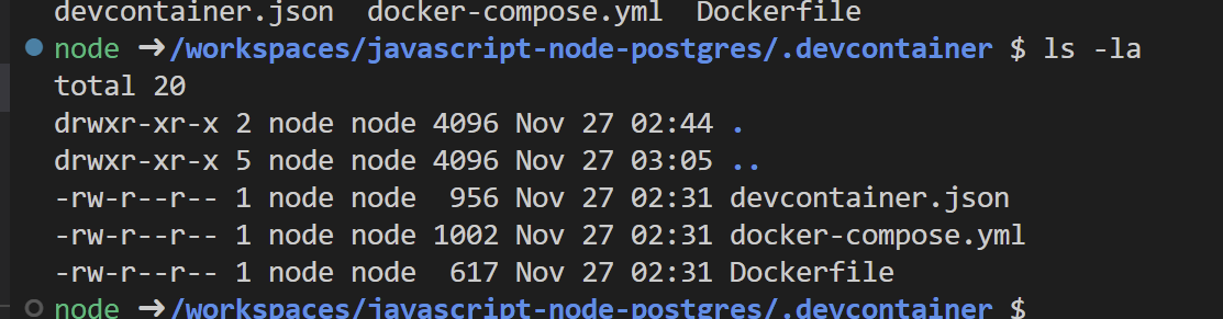 7.中身はどうなっているのか?(わかる範囲で) VSCodeでポチポチ押していくだけで2つのコンテナが瞬時に作れてしまいました。とても不思議な感じがします。わかる範囲でちょっと中身を見てみました。